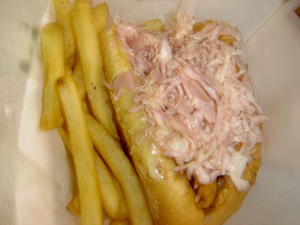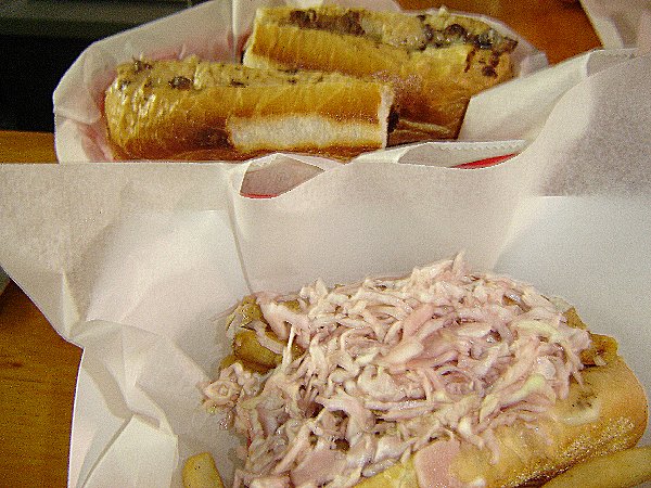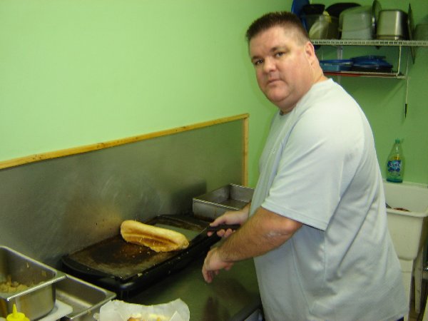 Now for the best part, the food. Mike has perfected the Primanti style cheese steak sandwich. He take a hoagie roll flown in fresh from Amoroso’s a legendary Philadelphia bakery. He then piles it high with center cut prime rib that is so lean and flavorful and with out all the grease that you normally find in a cheese steak sandwich. A couple of slices of provolone. Next comes the onions, peppers and crispy French fries. Topping it off with a healthy portion of sweet cole slaw. This sandwich was designed to be eaten with one hand but I had to use two!
