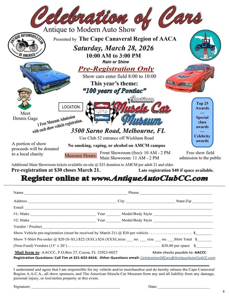 Celebration of Cars show, celebrating 100 years of Pontiac at the American Muscle Car Museum on march 28th 2026.